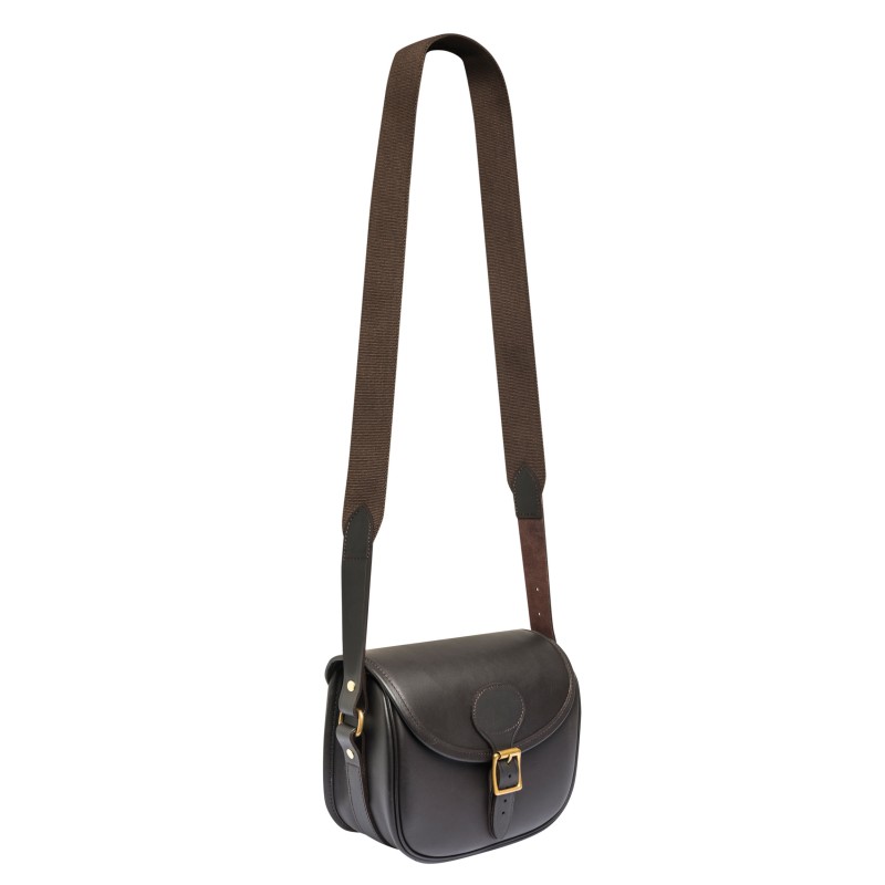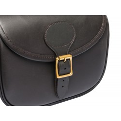 Skórzana torba na naboje z zamknięciem na klapę. Mosiężne klamry i nity. Mieści do 100 naboi kalibru 12.