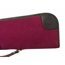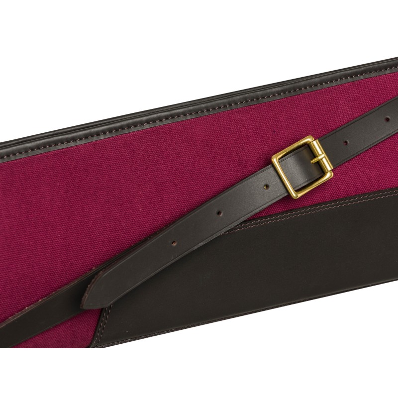 Pojedynczy pokrowiec na broń gładkolufową wykonany z bawełnianego płótna i paneli ze skóry naturalnej.
