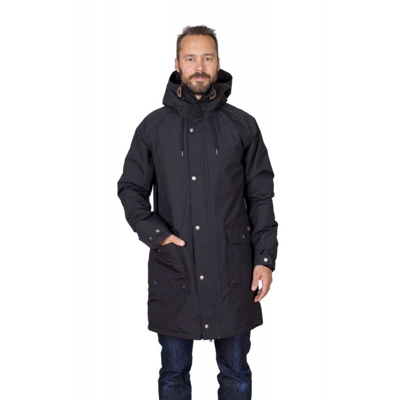 Płaszcz przeciwdeszczowy posiadający membranę 5000 mm słupa wody i oddychalność do 5000g/m2/24h. Posiada klejone szwy, dwukierunkowy zamek pod klapką na napy. Wygodny kaptur do regulacji ze sznurkami i stoperami oraz dwie kieszenie z patkami. Wewnętrzna podszewka w rękawie z otworami na kciuk dla lepszego zabezpieczenia przed wiatrem i wodą, pikowana podszewka posiada z przodu kieszeń na zamek błyskawiczny i gniado wyjściowe mediów. Tkanina zewnętrzna 100% poliamid. Podszewka i wypełnienie 100% poliester.