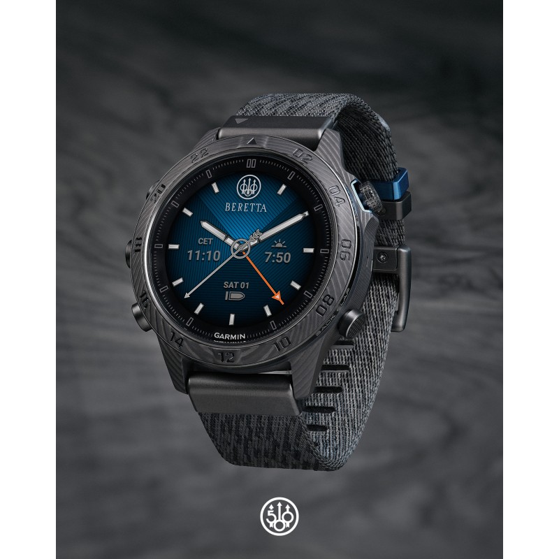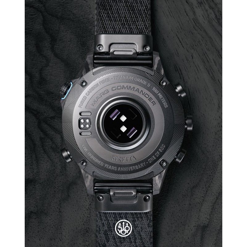 MARQ® Commander (Gen 2) – Beretta Edition to połączenie tradycji i innowacji. Wykonany z niezwykle wytrzymałej i lekkiej, kutej obudowy z włókna węglowego, składającej się ze 130 warstw, z ekranem dotykowym AMOLED, ten nowoczesny zegarek ucieleśnia precyzję i technologię.