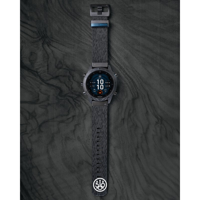 Dodatki do Beretty obejmują niebieski, grawerowany laserowo zaczep na pasek, przycisk start i tylną obudowę, nadające zegarkowi niepowtarzalny wygląd, a także preinstalowane analogowe i cyfrowe tarcze zegarka inspirowane Berettą.