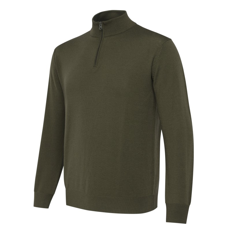 Męski sweter z wełny merynosów zapinany na suwak.